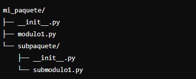 __init__.pypara indicar que es un paquete.Submódulo: Es un módulo dentro de un paqeute o subpaquete.